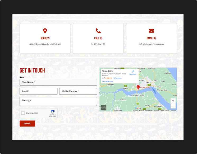 We built a stunning 5-page website using the WordPress CMS platform, having a page for “Menu” with separate sub-pages for A La Carte, Wine & Drinks, Lunch Menu, and Bambino/Kids as required by the client. We designed the website, incorporating amazing and tempting videos on the home page as provided by the client.